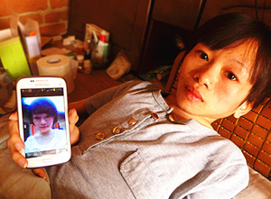 记者在赖丽施的家看到,阴暗的房间里,她躺在一张破旧不堪的床上,床的一边摆满了各种药品。一台表弟买的电脑开着,但因为怕辐射,她很少用。掀开被子,她的四肢一点肉都没有,可怜得让人不忍直视。赖丽施的手机还保存着两张她健康时的照片,让人无法想象手机中美丽阳光的美少女,如今瘦得不够40斤。