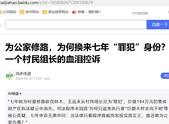 “我只是想为村里做点事,把路修通。”这可能是贵州三穗县款场乡三联村高眼组原村民小组组长王运来过去七年来,重复最多的一句话。然而,正是这份为公之心,让他走上了一条长达七年、至今未果的申诉之路,背上了一个“滥伐林木罪”的沉重标签,更目睹了价值上百万元的集体财产在疑云中消失。